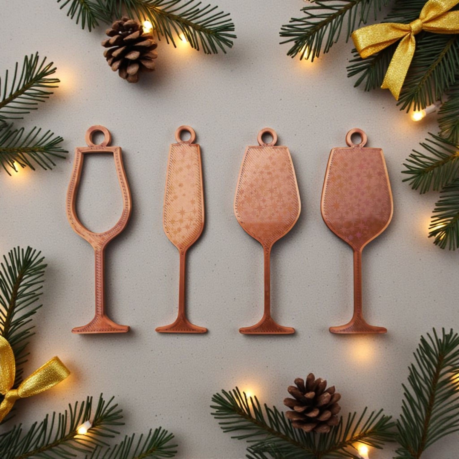 ✔ 4 unieke 3D geprinte wijnglasornamenten