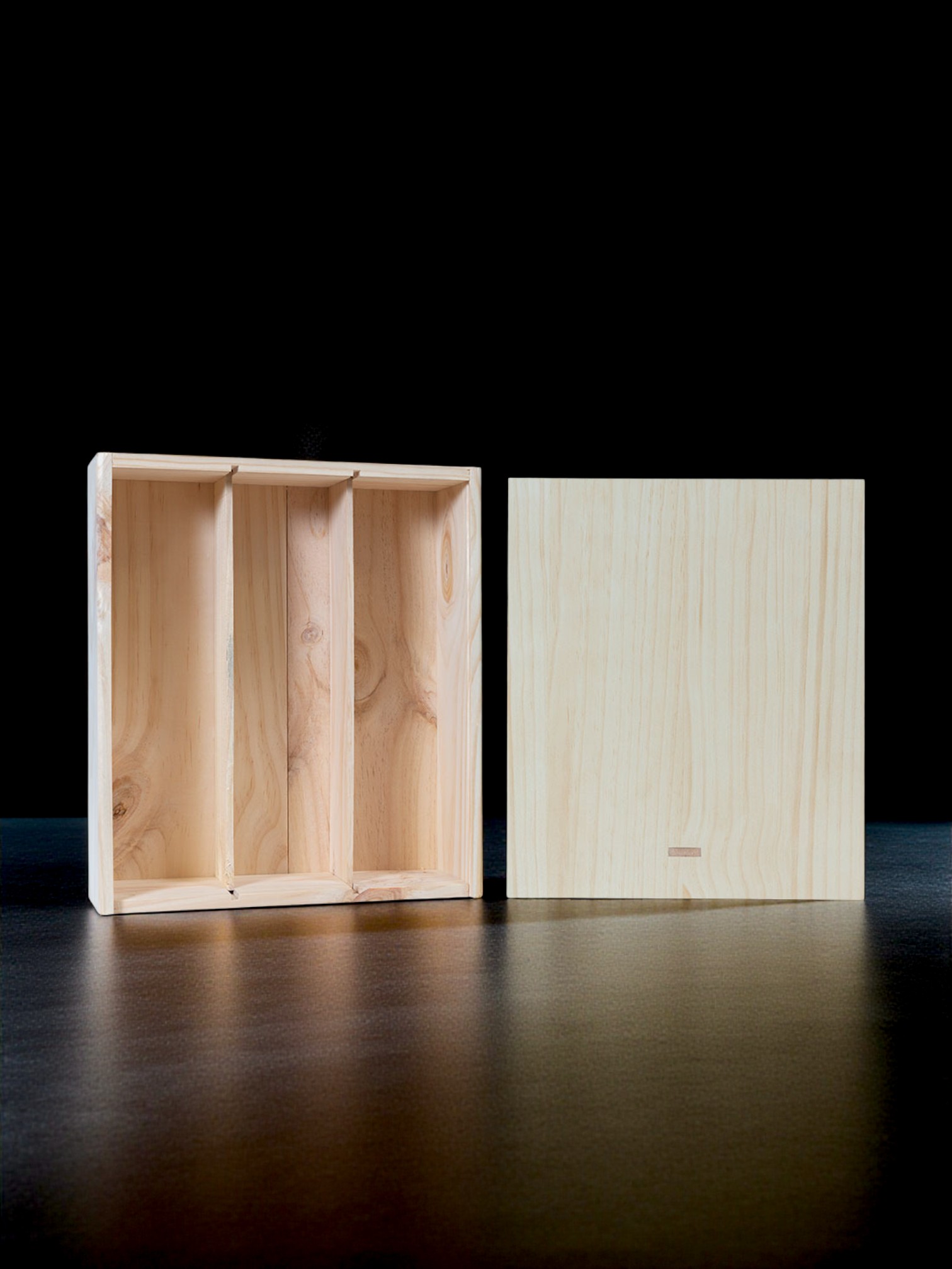 ▪ 3 vaks — ruimte voor drie flessen of een combinatie van wijn en cadeautjes voor een uitgebreid(er) pakket