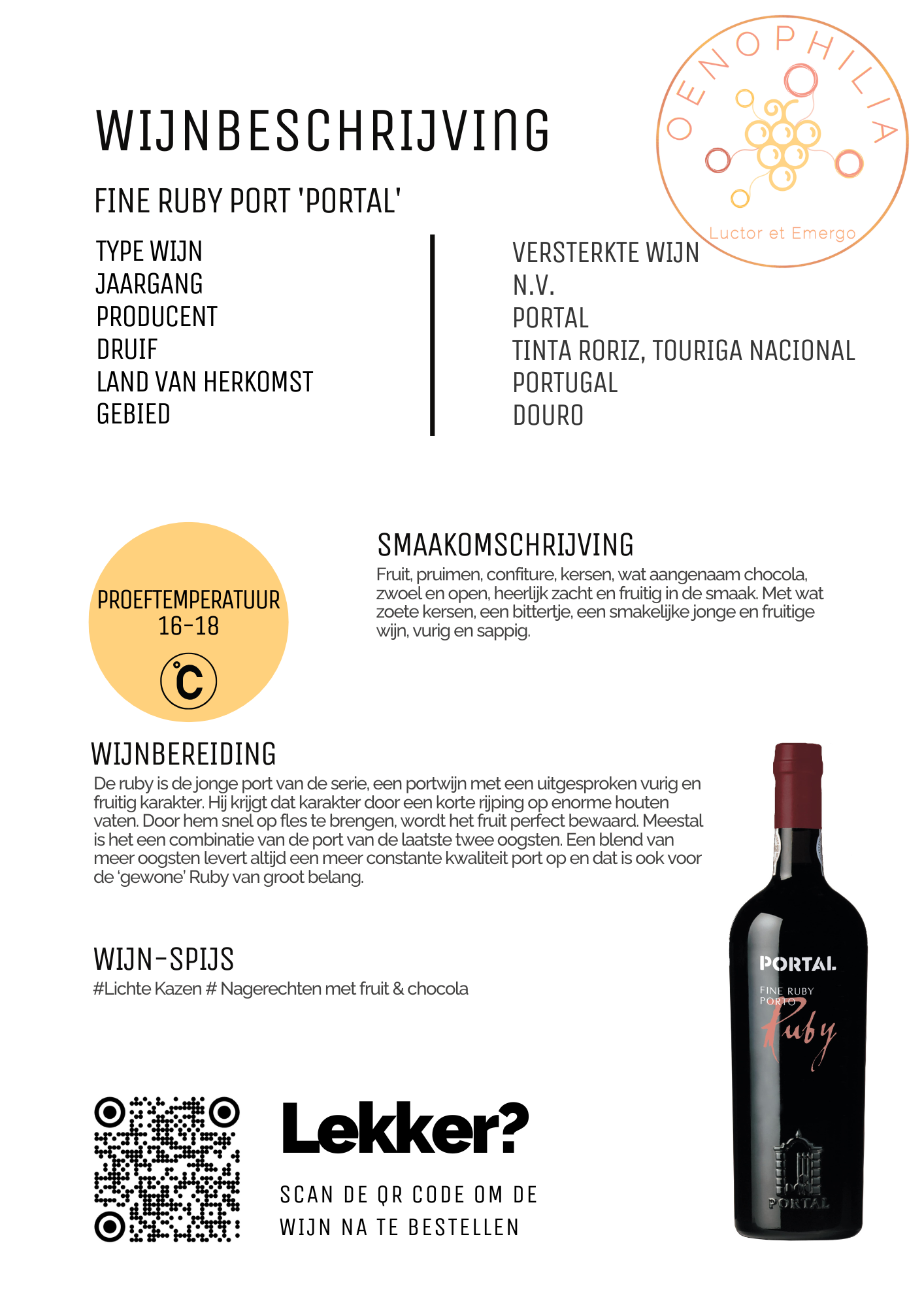 Fruit, pruimen, confiture, kersen, wat aangenaam chocola, zwoel en open, heerlijk zacht en fruitig in de smaak. Met wat zoete kersen, een bittertje, een smakelijke jonge en fruitige wijn, vurig en sappig.
