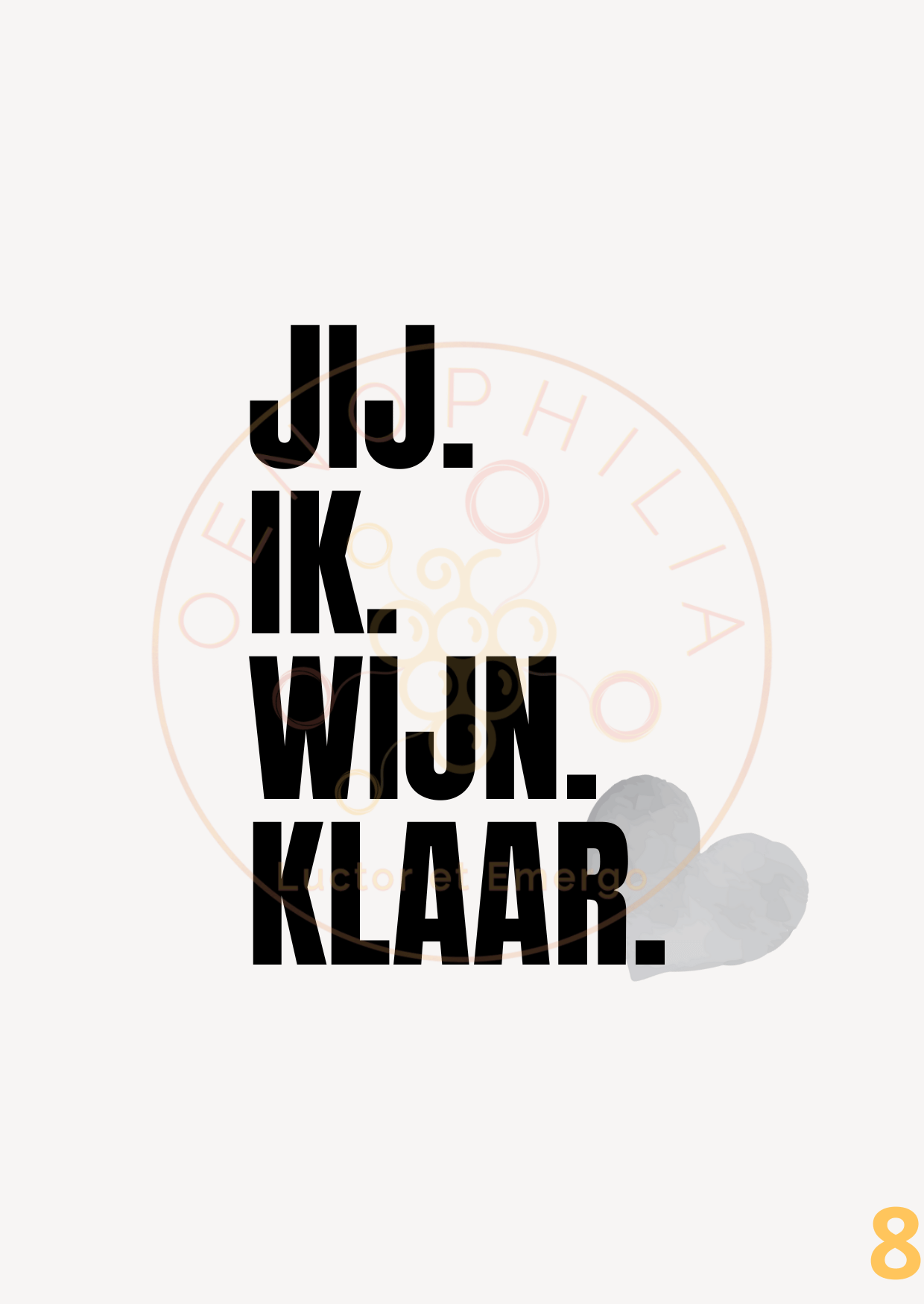 Met onze Say it with wine-kaartjes geef je je boodschap een eigenwijze wijn-twist: lief, grappig, brutaal of gewoon precies raak.